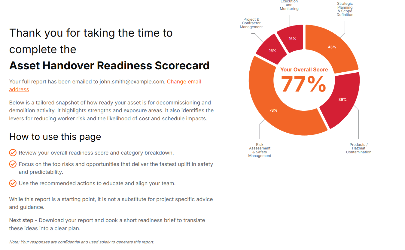 Respond to these questions designed specifically for asset owners and receive a project specific handover readiness report